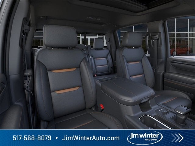 Sterling Metallic 2026 GMC Sierra 1500 AT4 4WD 10-Speed Automatic 3.0L I6 10-Speed Automatic, 4WD, Jet Black W/ Kalahari Leather, 120-Volt Bed Mounted Power Outlet, 120-Volt Interior Power Outlet, 2 Charge/Data USB Ports Inside Center Console, 2 Type-C Charge-Only Rear USB Ports, 2 USB Ports, 220 Amp Alternator, AT4 Preferred Package, AT4 Premium Package, Auto-Locking Rear Differential, Bed View Camera, Black Chrome Grille Insert Bars, Black Sport Step (LPO), Color-Keyed Carpeting Floor Covering, Deep-Tinted Glass, Electric Rear-Window Defogger, Floor-Mounted Center Console, Front Prem Floor Liners w/Removable Carpet Insert, Front Rain-Sensing Wipers, HD Surround Vision, Heated 2nd Row Outboard Seats, Heated Driver & Front Outboard Passenger Seating, Heavy-Duty Air Filter, Hill Descent Control, Hitch Guidance, Hitch View, In-Vehicle Trailering System App, Integrated Trailer Brake Controller, Keyless Open & Start, LED Cargo Area Lighting, Multicolor 15 Diagonal Head-Up Display, Off-Road High Clearance Step (LPO), OnStar Services Capable, Perimeter Lighting, Power Door Locks, Power Front Passenger Windows w/Express Up/Down, Power Front Windows w/Driver Express Up/Down, Power Rake & Telescoping Steering Column, Power Rear Windows w/Express Down, Power Sliding Rear Window w/Rear Defogger, Preferred Equipment Group 4SB, Premium Bose 7-Speaker Sound System, Push Button Start, Rear Camera Mirror, Rear Cross Traffic Braking, Rear Pedestrian Detection, Rear Prem Floor Liners w/Removable Carpet Insert, Rear Wheelhouse Liners, Red Recovery Hooks, Remote Vehicle Starter System, SiriusXM w/360L Trial Subscription, Spray-On Pickup Bedliner w/GMC Logo, Steering Wheel Audio Controls, Technology Package, Theft Deterrent System (Unauthorized Entry), Trailer Camera Provisions, Trailer Side Blind Zone Alert, Trailering Package, Ultrasonic Front & Rear Park Assist, Universal Home Remote, Ventilated Driver & Front Passenger Seats, Wi-Fi Hotspot Capable, Wireless Charging, 10-Way Power Driver Seat Adjuster w/Lumbar, 10-Way Power Passenger Seat Adjuster w/Lumbar, 3 Years SiriusXM, 3.23 Rear Axle Ratio, 4-Wheel Disc Brakes, 7 Speakers, ABS brakes, Air Conditioning, All-Weather Floor Liners w/AT4 Logo (LPO), Alloy wheels, AM/FM radio: SiriusXM with 360L, Apple CarPlay/Android Auto, Auto High-beam Headlights, Auto-dimming door mirrors, Auto-dimming Rear-View mirror, Automatic Emergency Braking, Automatic temperature control, Block heater, Brake assist, Buckle to Drive, Bumpers: body-color, Compass, Delay-off headlights, Driver door bin, Driver Memory, Driver vanity mirror, Dual front impact airbags, Dual front side impact airbags, Electronic Stability Control, Emergency communication system: OnStar, Following Distance Indicator, Forward Collision Alert, Front anti-roll bar, Front Bucket Seats, Front Center Armrest, Front dual zone A/C, Front fog lights, Front Pedestrian Braking, Front reading lights, Front wheel independent suspension, Fully automatic headlights, Heated door mirrors, Heated front seats, Heated rear seats, Heated steering wheel, Illuminated entry, IntelliBeam Automatic High Beam On/Off, Lane Keep Assist w/Lane Departure Warning, Low tire pressure warning, Memory seat, Navigation System, Occupant sensing airbag, Off-Road Suspension, Outside temperature display, Overhead airbag, Overhead console, Panic alarm, Passenger door bin, Passenger vanity mirror, Perforated Front Leather Seat Trim, Power door mirrors, Power driver seat, Power passenger seat, Power steering, Power Sunroof, Power windows, Radio data system, Radio: Premium GMC Infotainment Audio System, Rain sensing wipers, Rear reading lights, Rear seat center armrest, Rear step bumper, Rear window defroster, Remote keyless entry, Safety Alert Seat, Security system, Speed control, Speed-sensing steering, Split folding rear seat, Steering wheel mo Price includes: $1750 - Purchase Allowance. Exp. 02/02/2026 $2500 - Trade Assistance. Exp.
