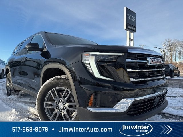 Recent Arrival! AWD, After Dark Cloth, Preferred Equipment Group 4SD, 12 Speakers, 18 x 7.5 Aluminum Wheels, 2-Way Driver Power Lumbar Seat Adjuster, 3.49 Final Drive Axle Ratio, 3rd row seats: split-bench, 4-Way Manual Front Passenger Seat Adjuster, 4-Wheel Disc Brakes, 8-Passenger Seating (2-3-3 Seating Configuration), 8-Way Power Driver Seat Adjuster, ABS brakes, Air Conditioning, Alloy wheels, AM/FM radio: SiriusXM with 360L, Apple CarPlay/Android Auto, Auto High-beam Headlights, Auto-dimming Rear-View mirror, Automatic temperature control, Bodyside moldings, Bose Premium 12-Speaker System with Sub-Woofer, Brake assist, Bumpers: body-color, Cloth Seat Trim, Compass, Delay-off headlights, Driver door bin, Driver vanity mirror, Dual front impact airbags, Dual front side impact airbags, Electronic Stability Control, Emergency communication system: OnStar Services capable, Exterior Parking Camera Rear, Four wheel independent suspension, Front anti-roll bar, Front Bucket Seats, Front Center Armrest, Front dual zone A/C, Front fog lights, Front License Plate Bracket, Front reading lights, Fully automatic headlights, Heated door mirrors, Heated Driver and Front Passenger Seats, Heated front seats, Heated steering wheel, Illuminated entry, Leather steering wheel, Low tire pressure warning, Navigation System, Occupant sensing airbag, Outside temperature display, Overhead airbag, Overhead console, Panic alarm, Passenger door bin, Passenger vanity mirror, Power door mirrors, Power driver seat, Power Liftgate, Power steering, Power windows, Radio data system, Radio: 15 Diagonal Premium GMC Infotainment System, Rear air conditioning, Rear anti-roll bar, Rear reading lights, Rear seat center armrest, Rear side impact airbag, Rear window defroster, Rear window wiper, Remote keyless entry, Security system, SiriusXM with 360L, Speed control, Speed-sensing steering, Split folding rear seat, Spoiler, Sport steering wheel, Steering wheel mounted audio controls, Tachometer, Telescoping steering wheel, Tilt steering wheel, Traction control, Trip computer, Turn signal indicator mirrors, Variably intermittent wipers, Voltmeter, AWD, After Dark Cloth, Preferred Equipment Group 4SD. Ebony Twilight Metallic 2025 GMC Acadia Elevation AWD 2.5L DOHC