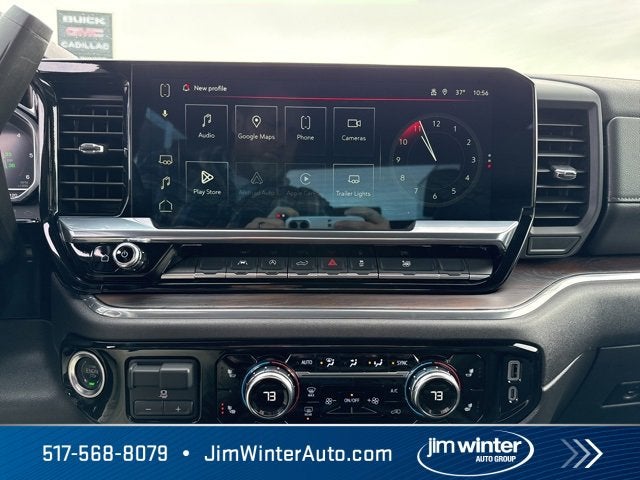Backup Camera, Clean 1 Owner Vehicle, Heat Package, Keyless Access w/ Push Button Start, Automatic Headlights, Bluetooth®, Touch Screen Controls, Voice Recognition, Smart Phone App Integration, Apple Car Play, Heated Seats, Tow Package, Trailer Package, Leather Seats, Power Package, Remote Start, Local Trade-in, 10-Speed Automatic, 4WD, Black Leather, 10-Way Power Driver Seat Adjuster w/Lumbar, 10-Way Power Passenger Seat Adjuster w/Lumbar, 120-Volt Bed Mounted Power Outlet, 120-Volt Interior Power Outlet, 170 Amp Alternator, 2 Charge/Data USB Ports, 2 Type-C Charge-Only Rear USB Ports, 3.23 Rear Axle Ratio, 4-Wheel Disc Brakes, 6 Speakers, 6-Speaker Audio System Feature, ABS brakes, Air Conditioning, Alloy wheels, AM/FM radio: SiriusXM with 360L, Apple CarPlay/Android Auto, Auto High-beam Headlights, Auto-dimming door mirrors, Auto-dimming Rear-View mirror, Auto-Locking Rear Differential, Automatic Emergency Braking, Automatic temperature control, Auxiliary External Transmission Oil Cooler, Brake assist, Buckle to Drive, Bumpers: chrome, Chrome Header & Chrome Grille Insert Bars, Color-Keyed Carpeting Floor Covering, Compass, Deep-Tinted Glass, Delay-off headlights, Driver door bin, Driver Memory, Driver vanity mirror, Dual front impact airbags, Dual front side impact airbags, Electric Rear-Window Defogger, Electronic Stability Control, Emergency communication system: OnStar, Following Distance Indicator, Forward Collision Alert, Front 40/20/40 Split-Bench Seat, Front anti-roll bar, Front Center Armrest w/Storage, Front dual zone A/C, Front fog lights, Front Frame-Mounted Black Recovery Hooks, Front Pedestrian Braking, Front Rain-Sensing Wipers, Front reading lights, Front wheel independent suspension, Fully automatic headlights, HD Rear Vision Camera, Heated door mirrors, Heated Driver & Front Outboard Passenger Seating, Heated front seats, Heated steering wheel, Hitch Guidance, Illuminated entry, Integrated Trailer Brake Controller, IntelliBeam Automatic High Beam On/Off, Keyless Open & Start, Lane Keep Assist w/Lane Departure Warning, LED Cargo Area Lighting, Low tire pressure warning, Manual Tilt-Wheel & Telescoping Steering Column, Memory seat, Navigation System, Occupant sensing airbag, OnStar Services Capable, Outside temperature display, Overhead airbag, Overhead console, Panic alarm, Passenger door bin, Passenger vanity mirror, Perf Leather-Appointed Front Outboard Seat Trim, Perimeter Lighting, Power Door Locks, Power door mirrors, Power driver seat, Power Front Passenger Windows w/Express Up/Down, Power Front Windows w/Driver Express Up/Down, Power passenger seat, Power Rear Windows w/Express Down, Power steering, Power windows, Preferred Equipment Group 4SA, Push Button Start, Radio data system, Radio: Premium GMC Infotainment Audio System, Rain sensing wipers, Rear reading lights, Rear seat center armrest, Rear step bumper, Rear Wheelhouse Liners, Rear window defroster, Remote keyless entry, Remote Vehicle Starter System, Security system, SiriusXM w/360L Trial Subscription, Speed control, Speed-sensing steering, Split folding rear seat, Standard Suspension Package, Steering Wheel Audio Controls, Steering wheel mounted audio controls, Tachometer, Telescoping steering wheel, Theft Deterrent System (Unauthorized Entry), Tilt steering wheel, Traction control, Trailering Package, Trip computer, Variably intermittent wipers, Voltmeter, Wheels: 18 x 8.5 6-Spoke Machined Aluminum, Wi-Fi Hotspot Capable, Wireless Apple CarPlay/Wireless Android Auto, 10-Speed Automatic, 4WD, Black Leather. Onyx Black 2025 GMC Sierra 1500 SLT 4WD EcoTec3 5.3L V8